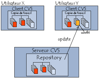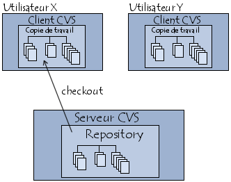 A l'aide d'un client CVS, chaque utilisateur souhaitant travailler sur le projet (pour modifier des fichiers ou simplement pour voir la dernière