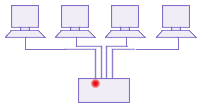 disposés en boucle, mais sont reliés à un répartiteur (appelé MAU, Multistation Access Unit) qui va donner successivement "la